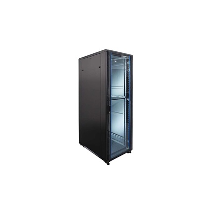Standing close rack 19″ 42 U width 600mm 1150mm glassdoor incl : 2 side door with lock, 12 out vertical, 4 fan, 1 pcs fixed shelf, 4 adjustable foot, 4 castors, 50 cagenut & screw